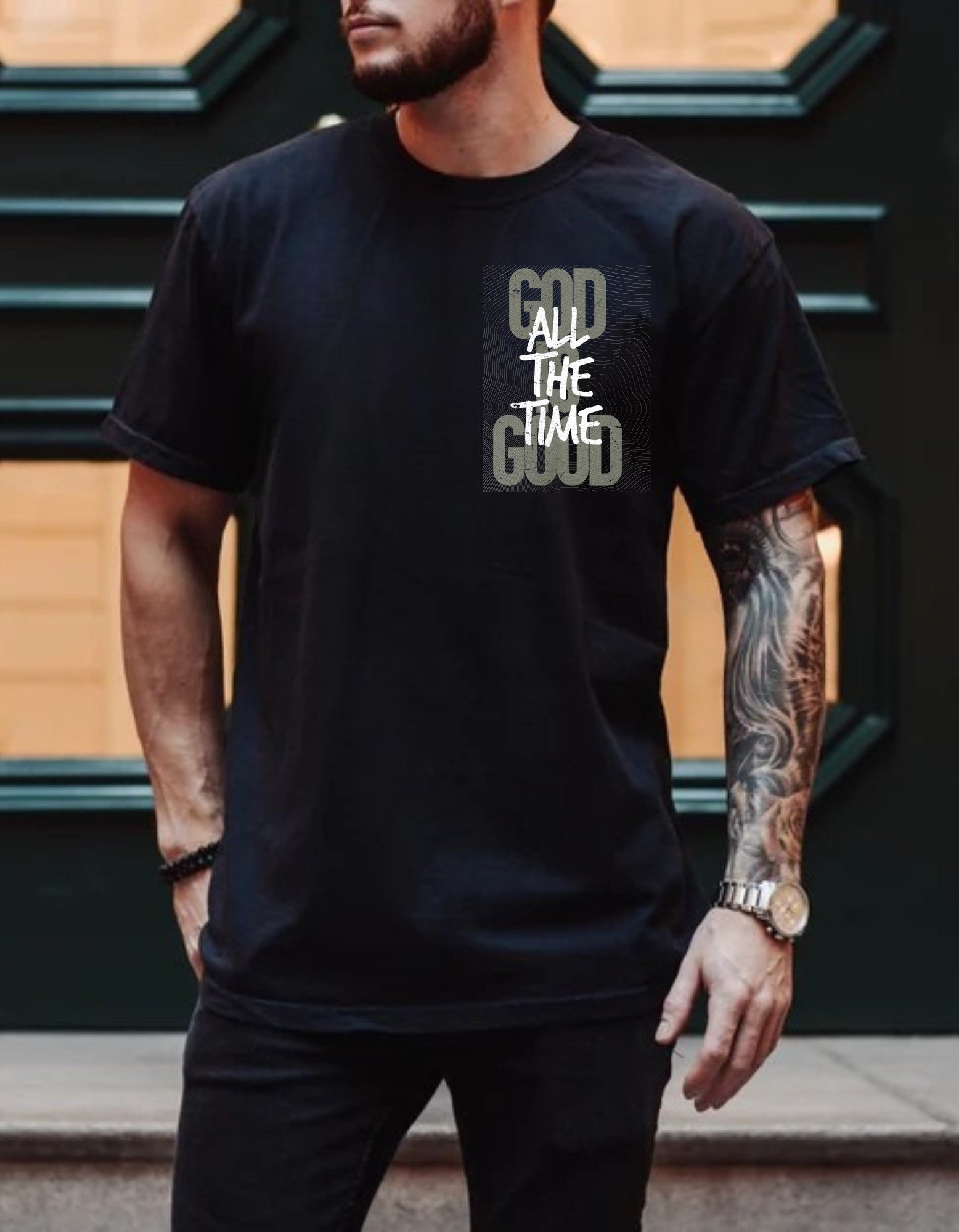 Dark-tone tee with glowing typography inspired by Space City night vibes.